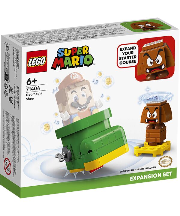 Grandi salti e grande divertimento nell’universo LEGO Super Mario! Aiuta LEGO Mario, LEGO Luigi o LEGO Peach (personaggi non inclusi) a sconfiggere il Goomba e a conquistarne la grande scarpa verde. A questo punto, entra nella scarpa, salta ed effettua giravolte per raccogliere fantastici premi in monete. Quando incontri un nemico, salta fuori dalla scarpa e calpestalo per ottenere ancora più monete.