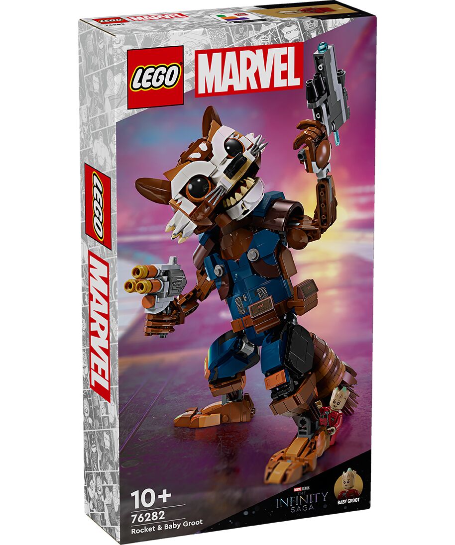 Con il set LEGO Marvel Rocket e Baby Groot (76282) puoi far salire di livello il gioco d'azione dei bambini e delle bambine da 10 anni in su, costruendo l'action figure di Rocket Raccoon alta 22 cm, con parti articolate e ricca di dettagli originali. Molto più di un semplice gioco da supereroi da costruire per bambini, il modellino del personaggio Marvel di Rocket Raccoon è una riproduzione realistica di una delle iconiche figure del film Guardiani della Galassia di Marvel Studios. Il modello snodabile cattura l’atteggiamento ribelle e l’amore per le armi dell’eroe. Tutte le articolazioni (tranne i gomiti) sono mobili, per offrire il massimo delle possibilità di gioco e di esposizione. Il personaggio Marvel ha in mano uno shooter a molla e un blaster. Sulla sua spalla siede il suo adorabile compagno, Baby Groot. Se stai cercando giocattoli costruibili di tendenza per i giovani supereroi, il set LEGO Marvel Rocket e Baby Groot è la scelta giusta per i bambini che vogliono mostrare il loro stile da supereroi. Inoltre, per aggiungere divertimento in digitale, i piccoli costruttori possono ingrandire, ruotare i modelli in 3D e monitorare i progressi compiuti tramite la divertente e intuitiva app LEGO Builder.